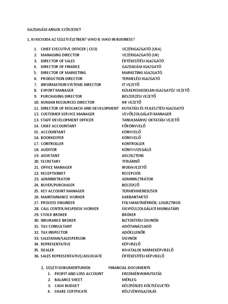 Gazdasagi Angol Szoszedet Docx