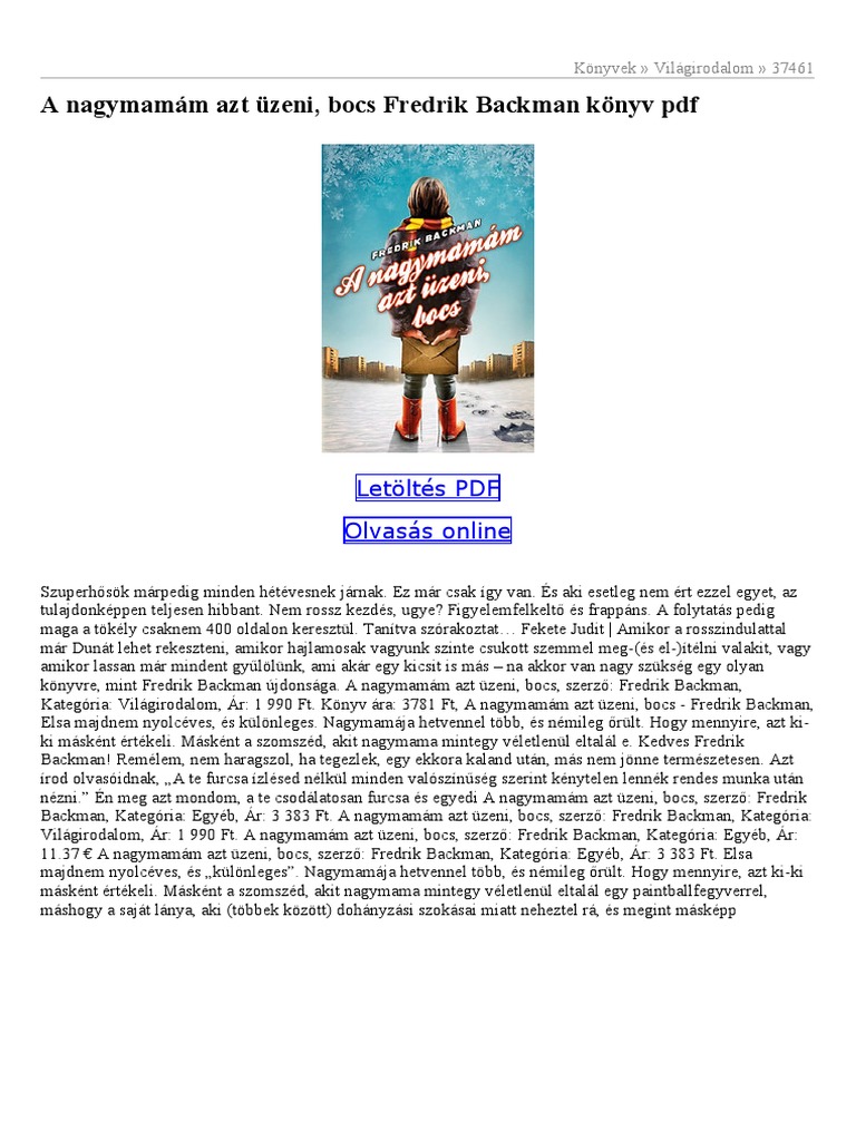 Konyv A Nagymamam Azt Uzeni Bocs Fredrik Backman