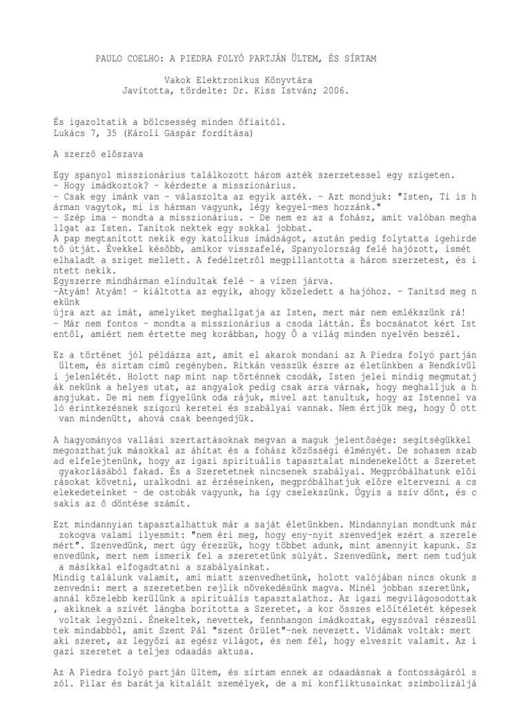 Paulo Coelho Konyve Piedra Folyo Partjan Ultem Es Sirtam Xv Kerulet Budapest