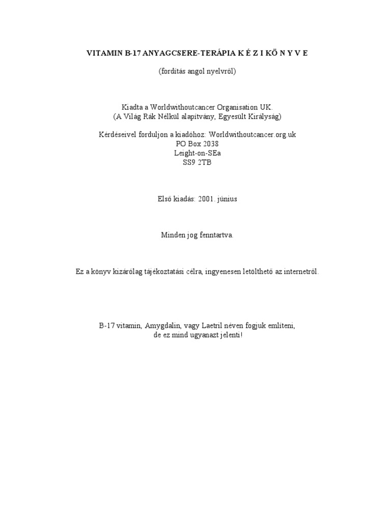 Vitamin B 17 Anyagcsere Terapia K E Z I Ko N Y V E Forditas Angol Nyelvrol Pdf Free Download