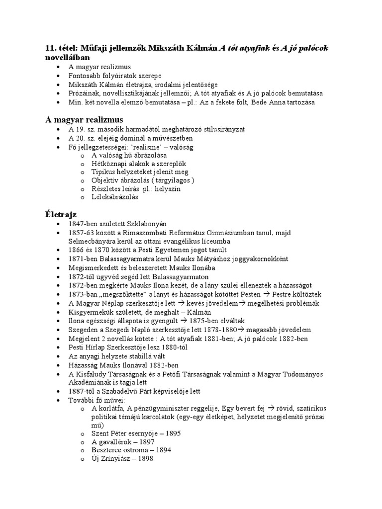 Novellaelemzes Minta Mikszath Kalman Ingatlanjegyzetek