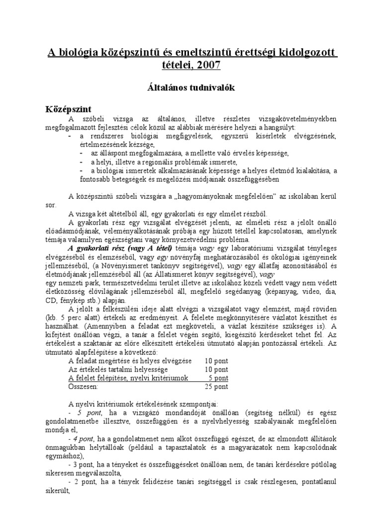 A Biologia Kozepszintu Es Emeltszintu Erettsegi Kidolgozott Tetelei 2007 2007 98 Oldal