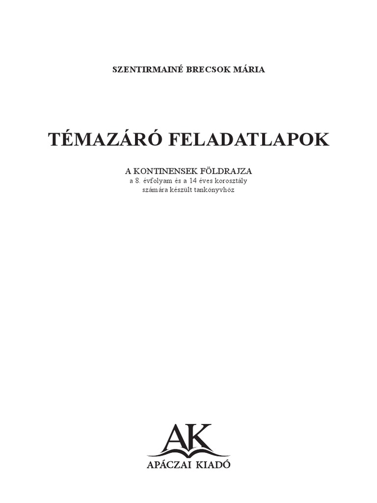 Földrajz Témazáró 8 Osztály Szentirmainé