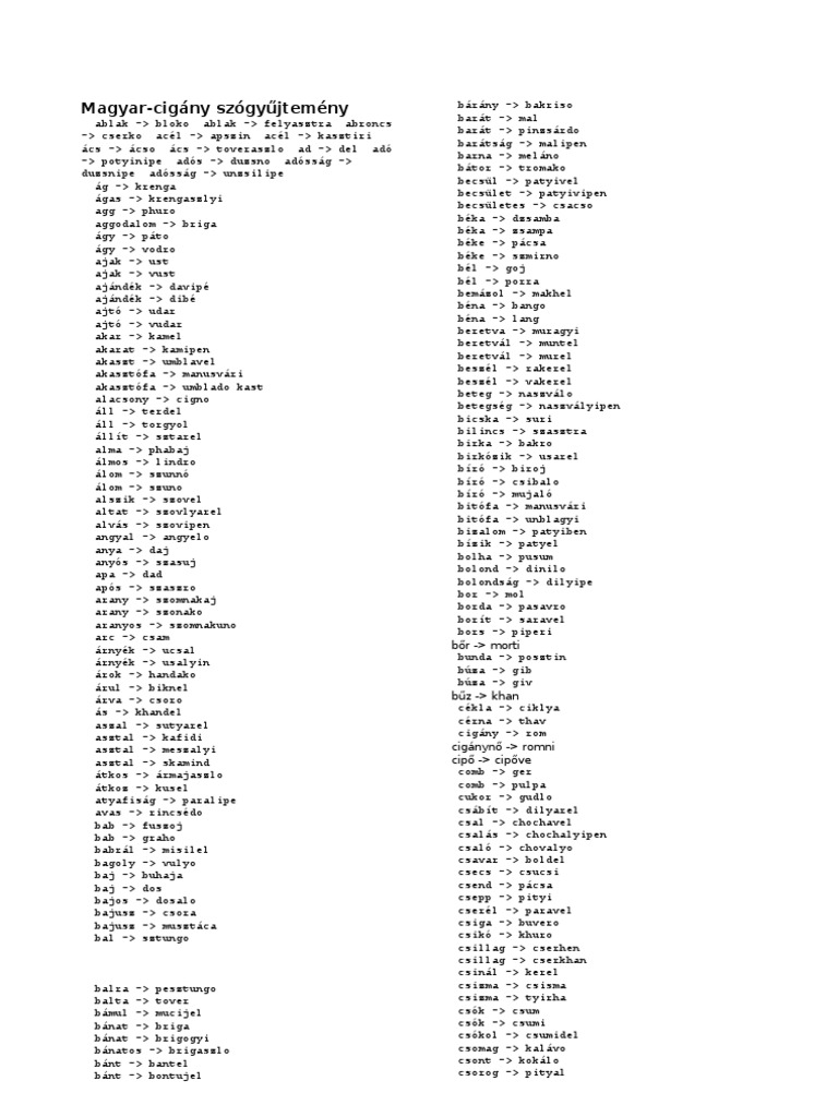 Papp Janos Cigany Magyar Magyar Cigany Keziszotar Romane Ungrike Ungrike Romane Vasteske Alava