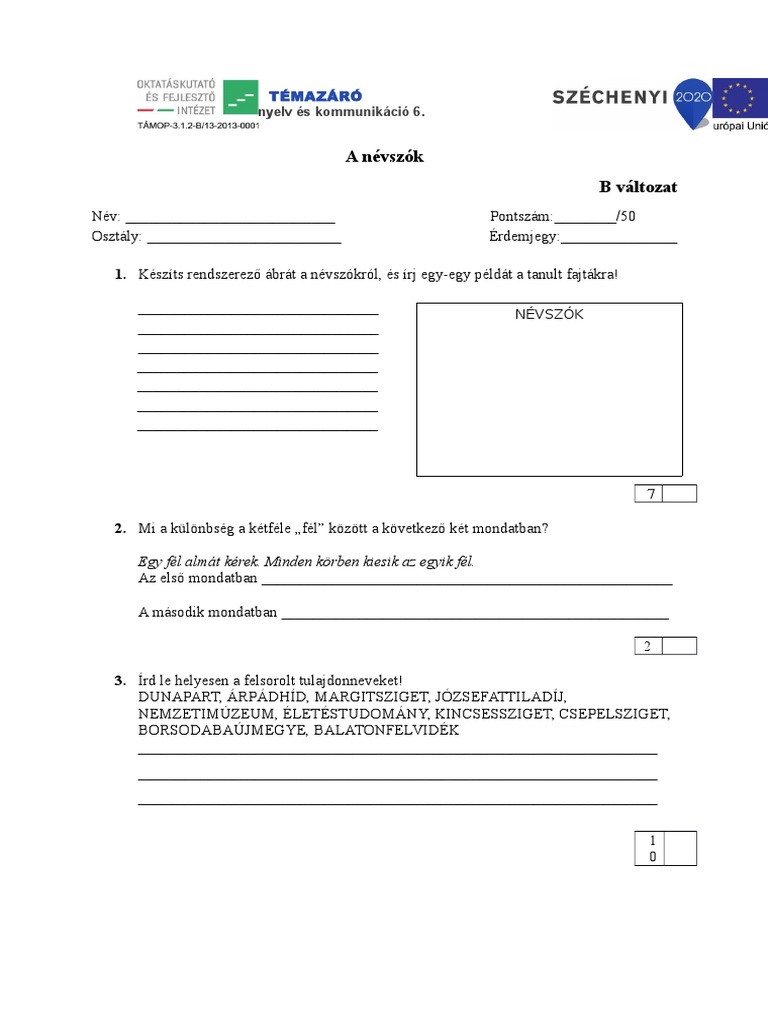 Magyar Nyelvi Ellenorzo Dolgozatok Pdf Ingyenes Letoltes