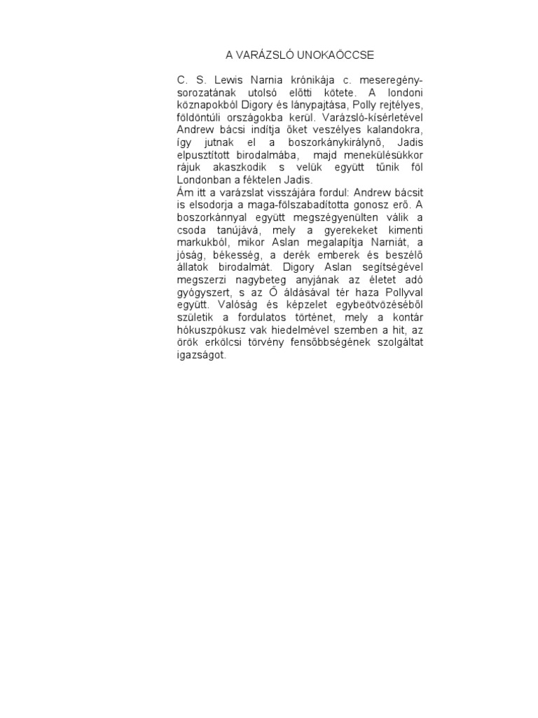 Narnia Kronikai 1 A Varazslo Unokaoccse Konyvek Abel Kiado