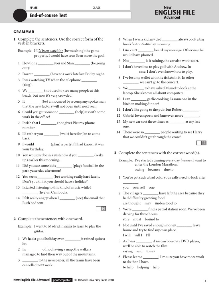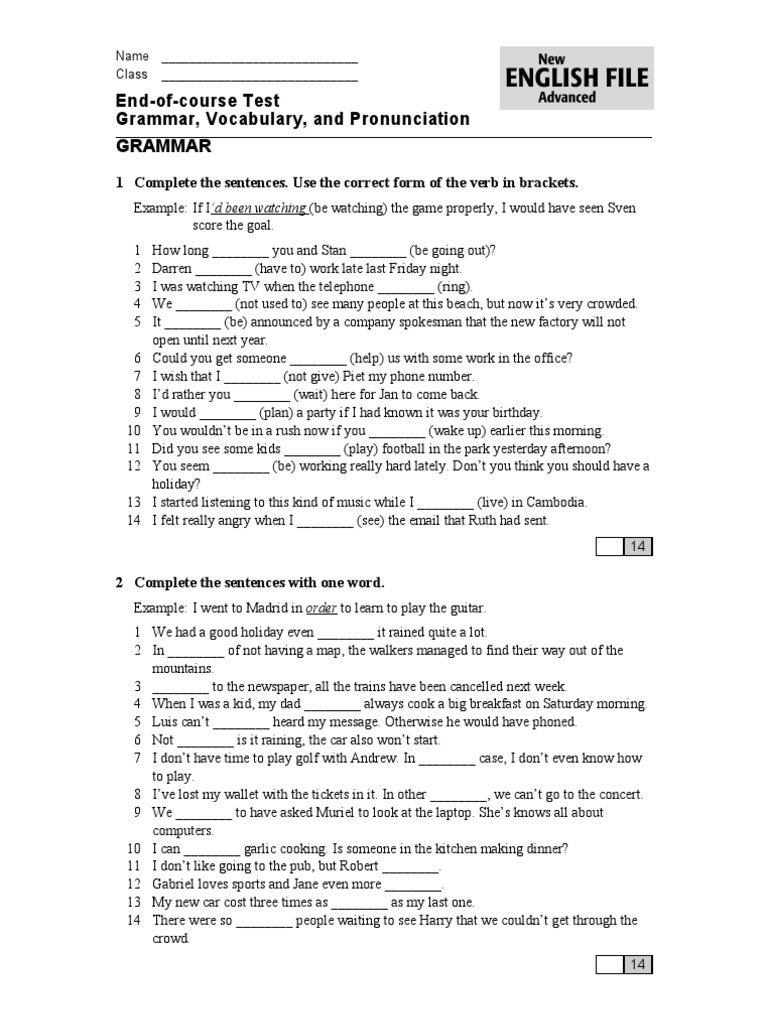 English File End Of Course Test New Beginner 1 Complete The Sentences With One Word Pdf Free Download