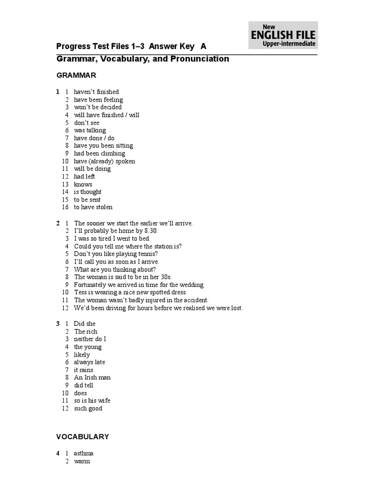 New English File Upper Intermediate Test Answer Key