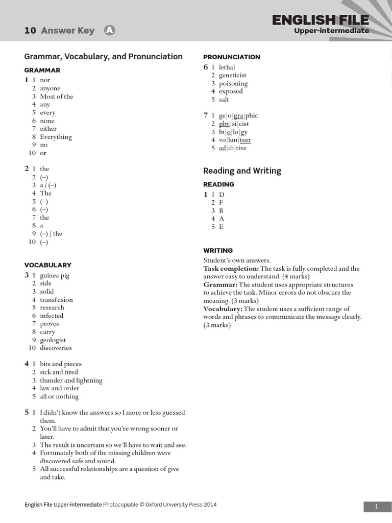 New English File Upper Intermediate Test Booklet Key Skyeyigo
