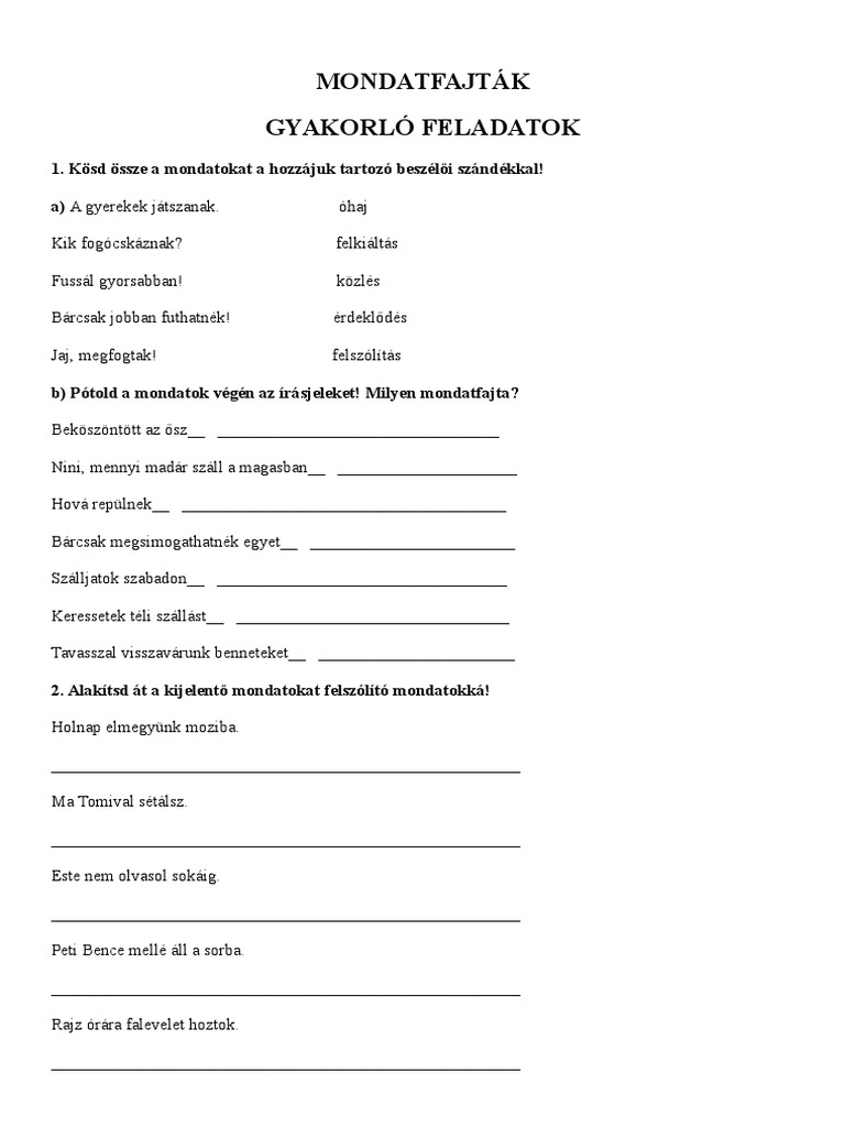 Gyakorlo Feladatok A Mondatfajtakhoz 2 Osztaly Tanitoikincseim Lapunk Hu Teaching Kids Learning Learning