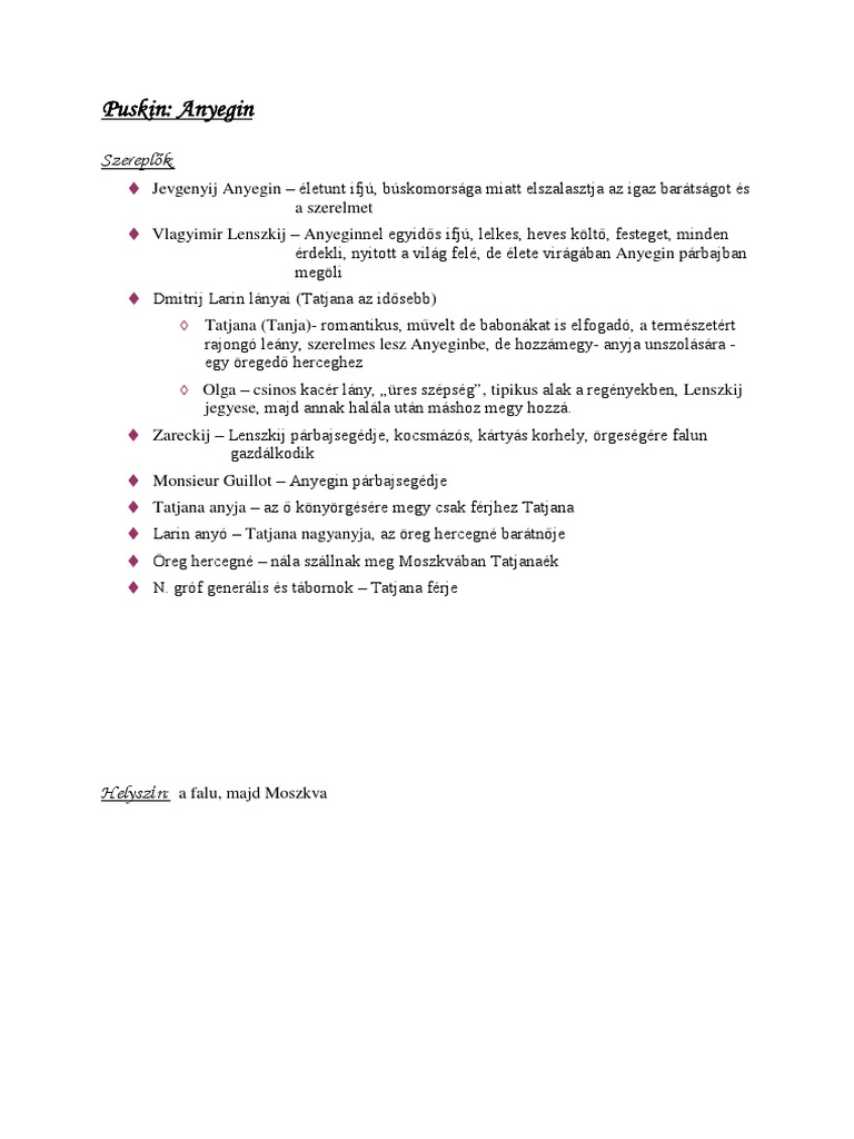 Puskin Anyegin Olvasonaplo Olvasonaplo