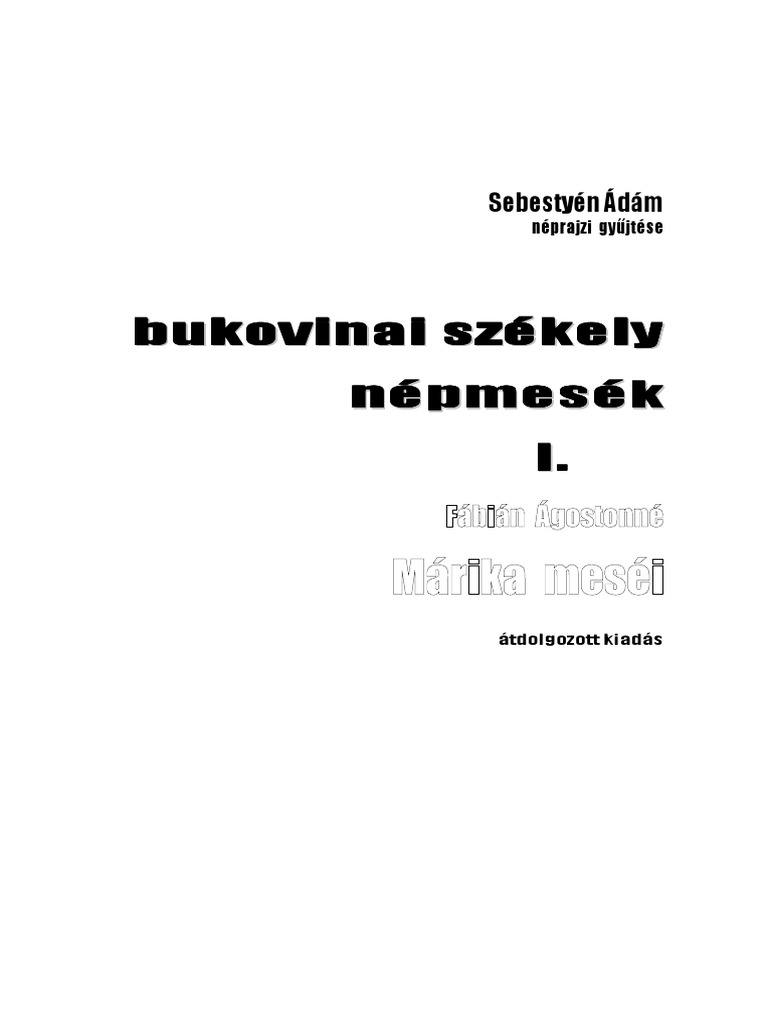 Bukovinai Szekely Nepmesek I U A Atdolgozott Kiadas Pdf