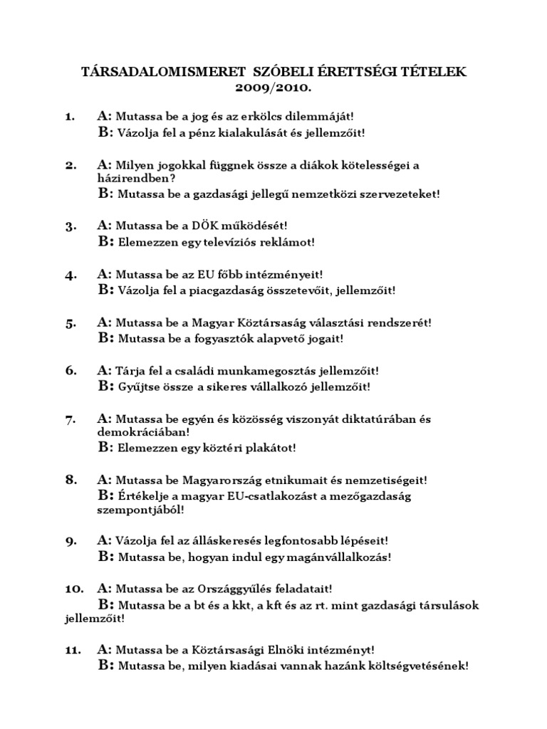 Tarsadalomismeret Szobeli Erettsegi Tetelek