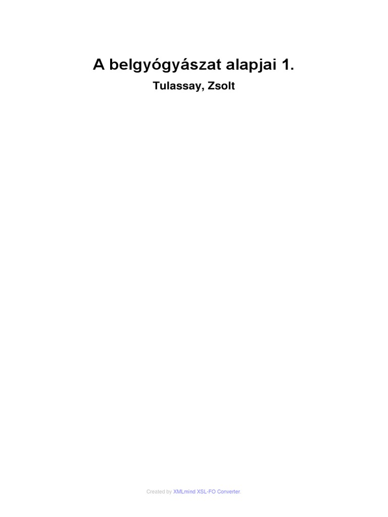 Tulassay Zsolt A Belgyógyászat Alapjai